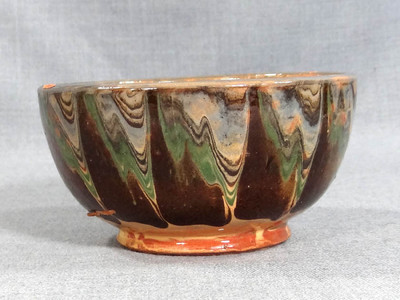 Title (ebay affiliate link): ANTIQUE CIVIL WAR ERA GLAZED REDWARE YELLOWARE POTTERY BOWL DISH POT~SLAG MOTIFS