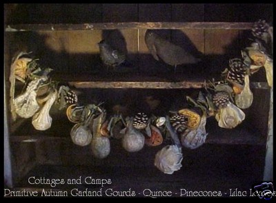 Title (ebay affiliate link): PRIMITIVE AUTUMN FALL GARLAND DRIED QUINCE ~ GOURDS ~PINECONES ~ WALNUTS ~ LILAC