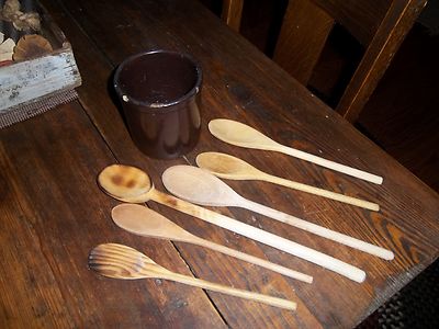 Title (ebay affiliate link): PRIMITIVE VINTAGE 6 OLD *FARM KITCHEN* WOOD SPOONS FOR CROCKS OR BOWLS PATINA