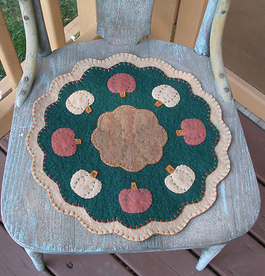 Title (ebay affiliate link): ~*Primitive Fall Candle Mat...wool felt pumpkins...penny rug........*~