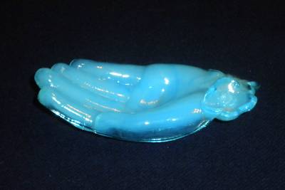 Old Victorian Blue Milk Glass Hand Shaped Trinket Dish