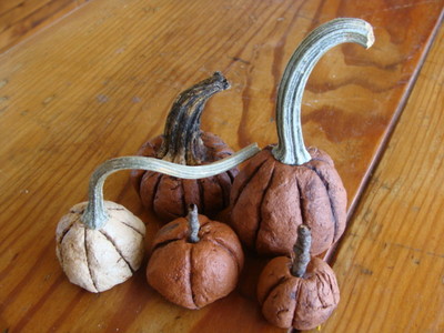 PAPER MACHE PUMPKINS - Folk Art-Primitive-Halloween-Fall - Real Stems - Handmade