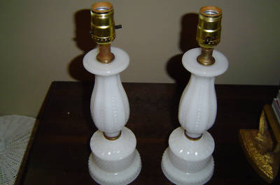 Pair of Vintage White Milk Glass Hobnail Lamp No Shades