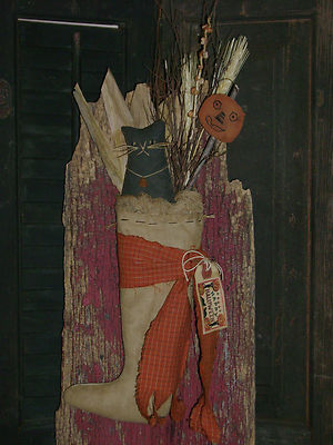 Title (ebay affiliate link): Primitive Grungy Halloween Fall Stocking ~ Kitty Cat Doll ~ Pumpkin ~Ro's Attic