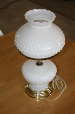VINTAGE MILK WHITE GLASS HOBNAIL TABLE LAMP MILKGLASS