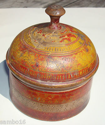 Antique Primitive Treenware Peaseware Wooden Covered Bowl Spice Container #2