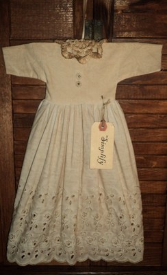 GRUNGY PRIMITIVE WALL~CUPBOARD~DOLL DRESS ECRU EMBROIDERY EYELET~FOLK ART~DECOR