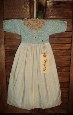 GRUNGY PRIMITIVE WALL~CUPBOARD~DOLL DRESS BLUE FLORAL STRIPE~FOLK ART~DECOR