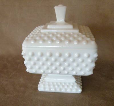 White Milk Glass, Fenton, Hobnail Covered Candy Dish