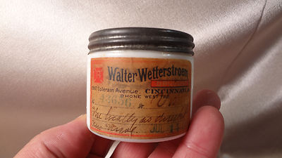 Title (ebay affiliate link): Vintage 1915 Pharmaceutical Milk Glass Jar with Label
