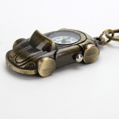 Vintage Automotive Car Shape Keychain Watch Pocket Watches Antique Bronze Clisp
