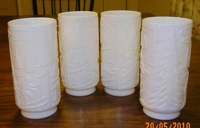 4 Embossed Milk Glass Tumblers (Imperial) Skiing Winter