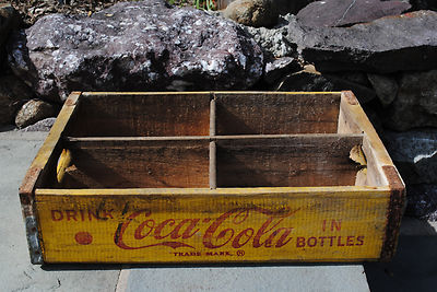 Title (ebay affiliate link): Vintage Antique Yellow Wooden Coca Cola Crate Coke Advertising Box Carrier
