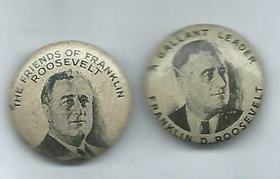 FDR Roosevelt 2 pin button set Democrat Lithograph photo set