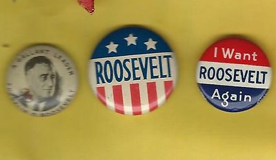 Title (ebay affiliate link): FDR ROOSEVELT 3 photo slogan name set pins buttons Democrat