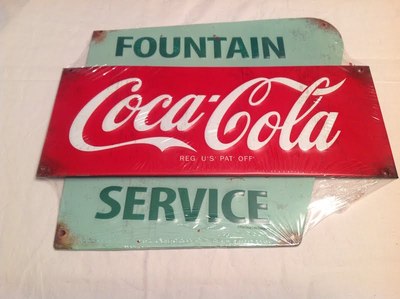 Title (ebay affiliate link): Coca Cola Fountain Service Vintage Look Embossed Metal Sign Coke Soda Distressed