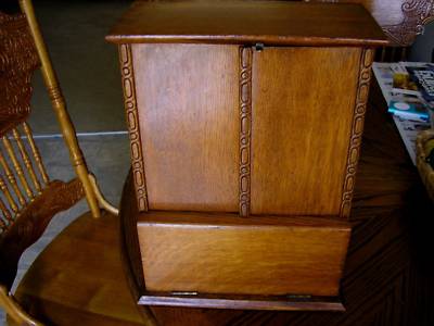 Title (ebay affiliate link): Antique Oak Wardrobe Cabinet Salesman Sample Armoire