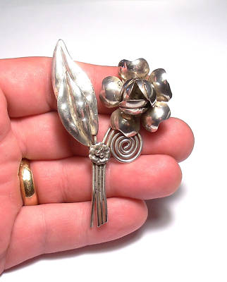 Sterling Silver Antique Handmade Floral Pin Brooch
