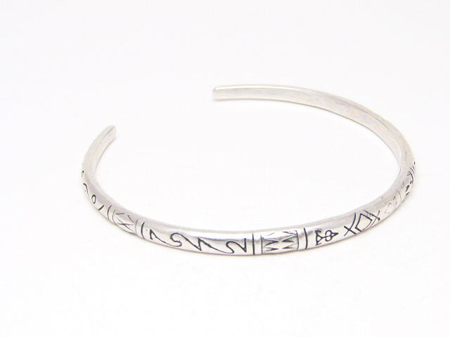 Engraved Antique Silver Tone Cuff Bracelet Bangle