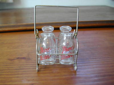 4 Vintage Miniature Pure Milk Glass Bottles in Carrier