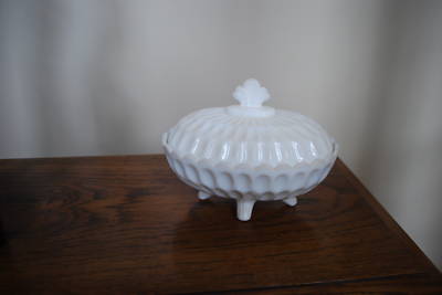 Milk Glass Dish with 4 legs and Top 2 Pieces