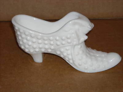 VINTAGE HOBNAIL MILK GLASS SHOE SLIPPER WITH CAT
