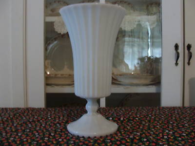 MILK GLASS RIDGED VASE 10 1/2 IN H 5 3/4 IN WIDTH