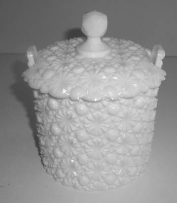 MILK GLASS DAISY & BUTTON BISCUIT JAR