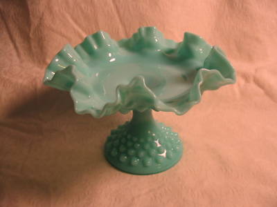 Vintage Fenton Milk Glass Blue Hobnail Compote