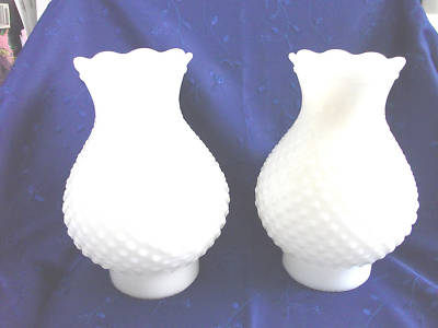 2 .VINT. HOBNAIL MILK GLASS SHADES HURRICANE SHADES