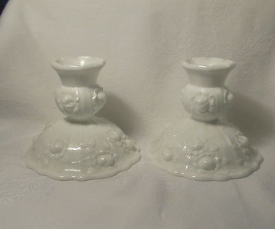 Fenton Milk Glass 60s 70s Rose Pattern Candlesticks