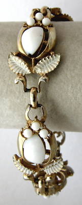 Vintage Milk Glass Cabochon Enamel Bracelet