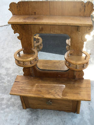 Title (ebay affiliate link): ANTIQUE OAK WOOD CARVED SHAVING CABINET W/BEVEL MIRROR