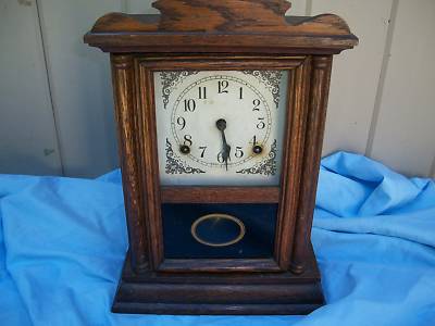Title (ebay affiliate link): ANTIQUE SHELF CLOCK MANTEL CLOCK NICE DETAILED OAK CASE