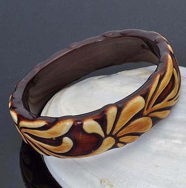 Antique Vintage Cute Carved Resin Bangle Bracelet Ad345