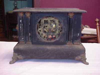 ANTIQUE GILBERT MANTEL PILLAR CLOCK CASE W/SOME PARTS