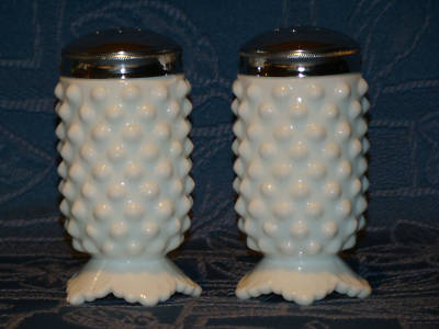 Fenton Hobnail Milk Glass Footed Salt & Pepper Shakers