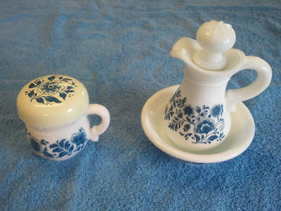 1972 Vintage Avon SSS Delft Blue/White Milk Glass Set