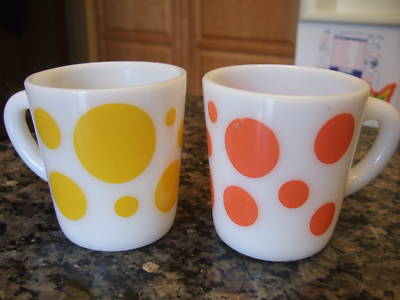 2 Vintage 50s HAZEL ATLAS POLKA DOT MILK GLASS CUPS MUG