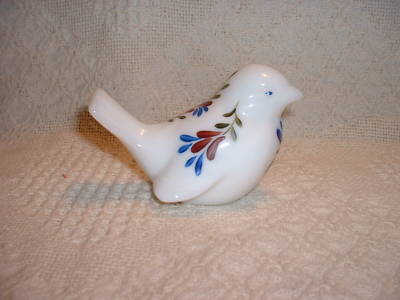 FENTON MILK GLASS HP PATRIOTIC BIRD