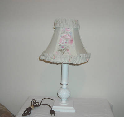 VINTAGE HOBNAIL MILK GLASS LAMP W/ SHABBY SHADE LQQK