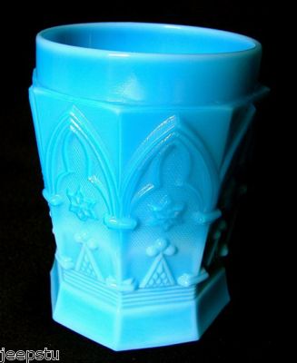 Gothic Arch Blue Milk Glass Tumbler MINT
