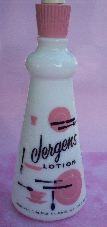 Vintage Retro Jergens Lotion Milk Glass w/ Pink Bottle
