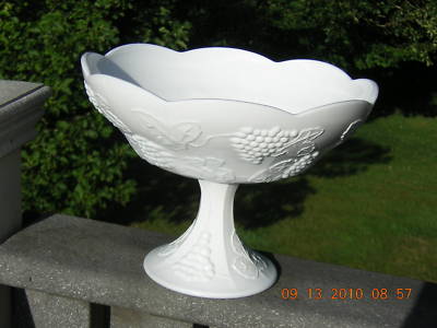 MILK GLASS ANCHOR HOCKING GRAPES AND LEAVES FRUIT BOWL