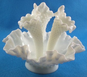 VINTAGE FENTON 4 PC. MILK GLASS HOBNAIL RUFFLED EPERGNE