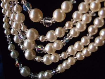 Antique Vintage 5-strand Pearl Crystal Necklace