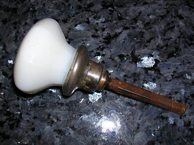ANTIQUE WHITE MILK GLASS DOOR KNOB NICKEL W POST
