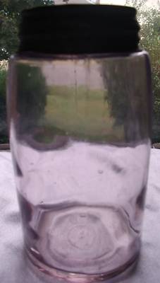 PURPLE Quart w/ Milk Glass Swirl Vintage Fruit Jar