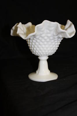 HOBNAIL MILK GLASS FOOTED RUFFLED VASE