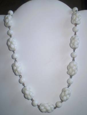 VTG MOLDED MILKGLASS MILK GLASS ON CHAIN NECKLACE